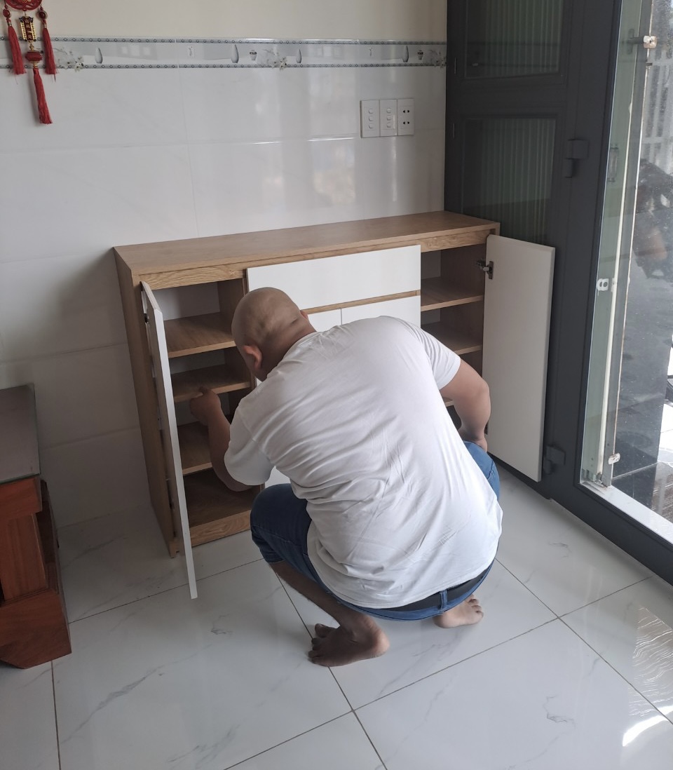 Tủ giày cần 2-3 người khiêng vì độ nặng và chắc của tủ