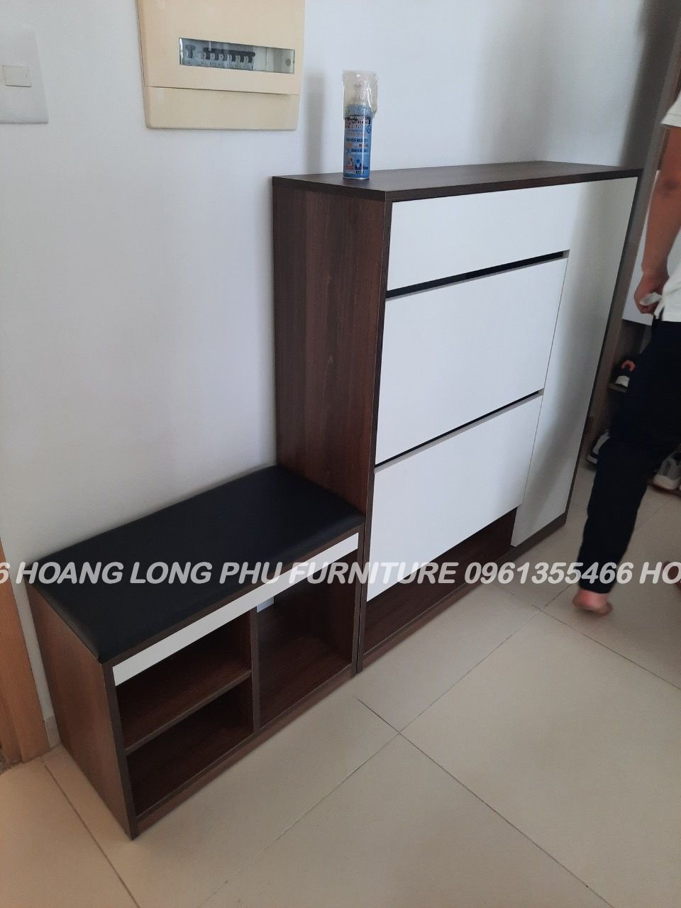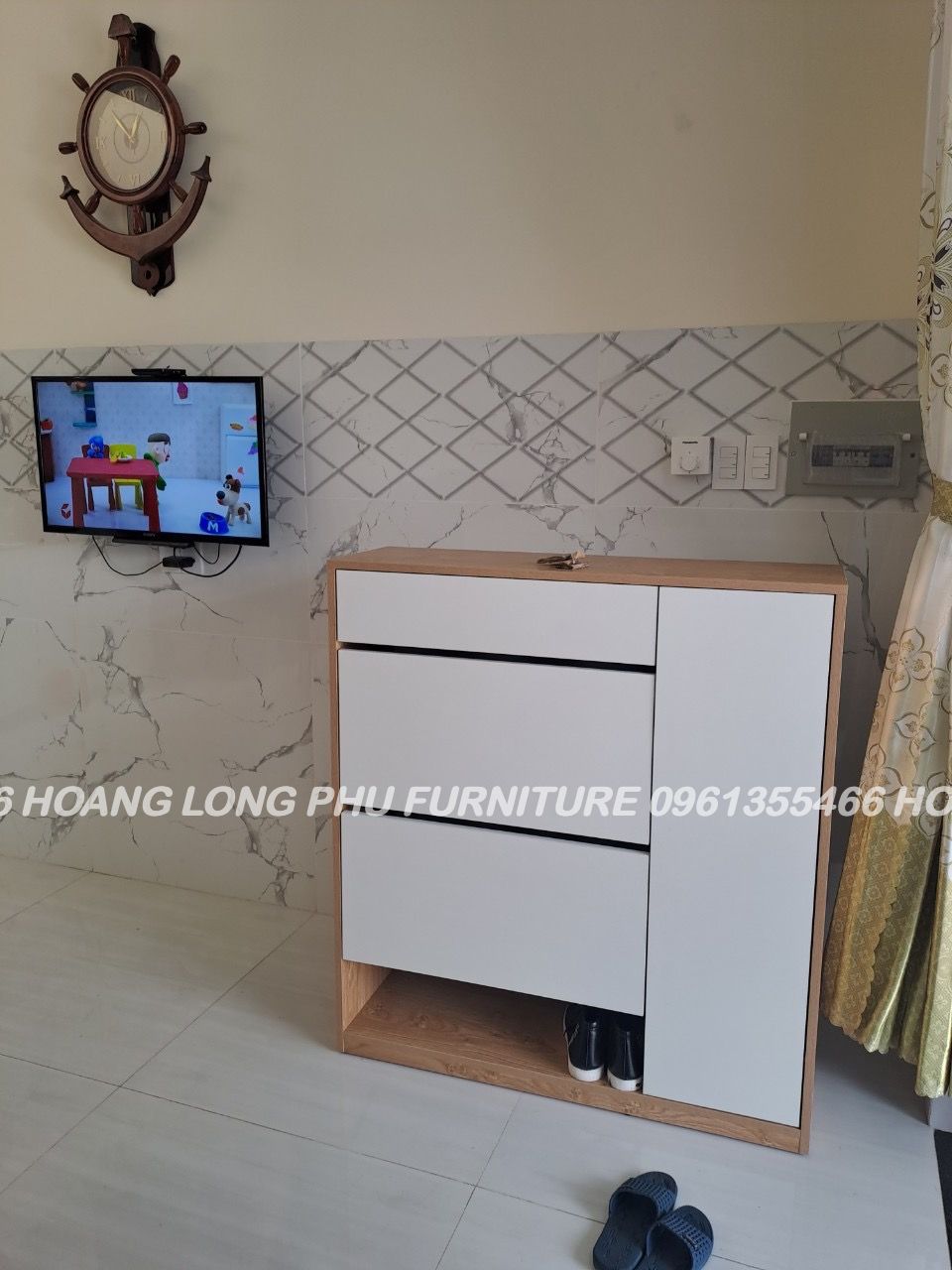 - Chi tiết: tủ 1 hộc kéo, 2 cánh lật đựng giày, 1 ô trống, 1 cánh đứng mở